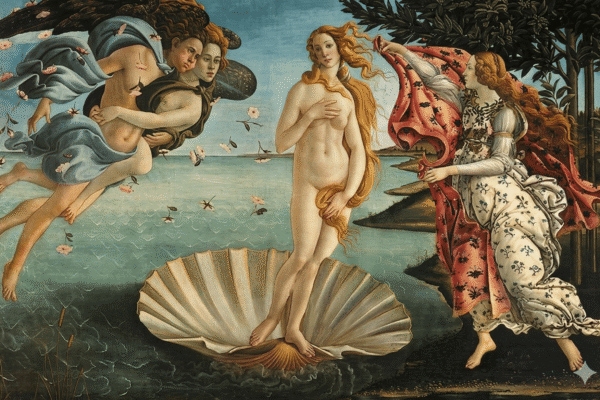 Analise O Nascimento de Vênus de Botticelli: iconografia, técnica, contexto histórico e neoplatonismo. Obra conservada nos Uffizi desde 1815.